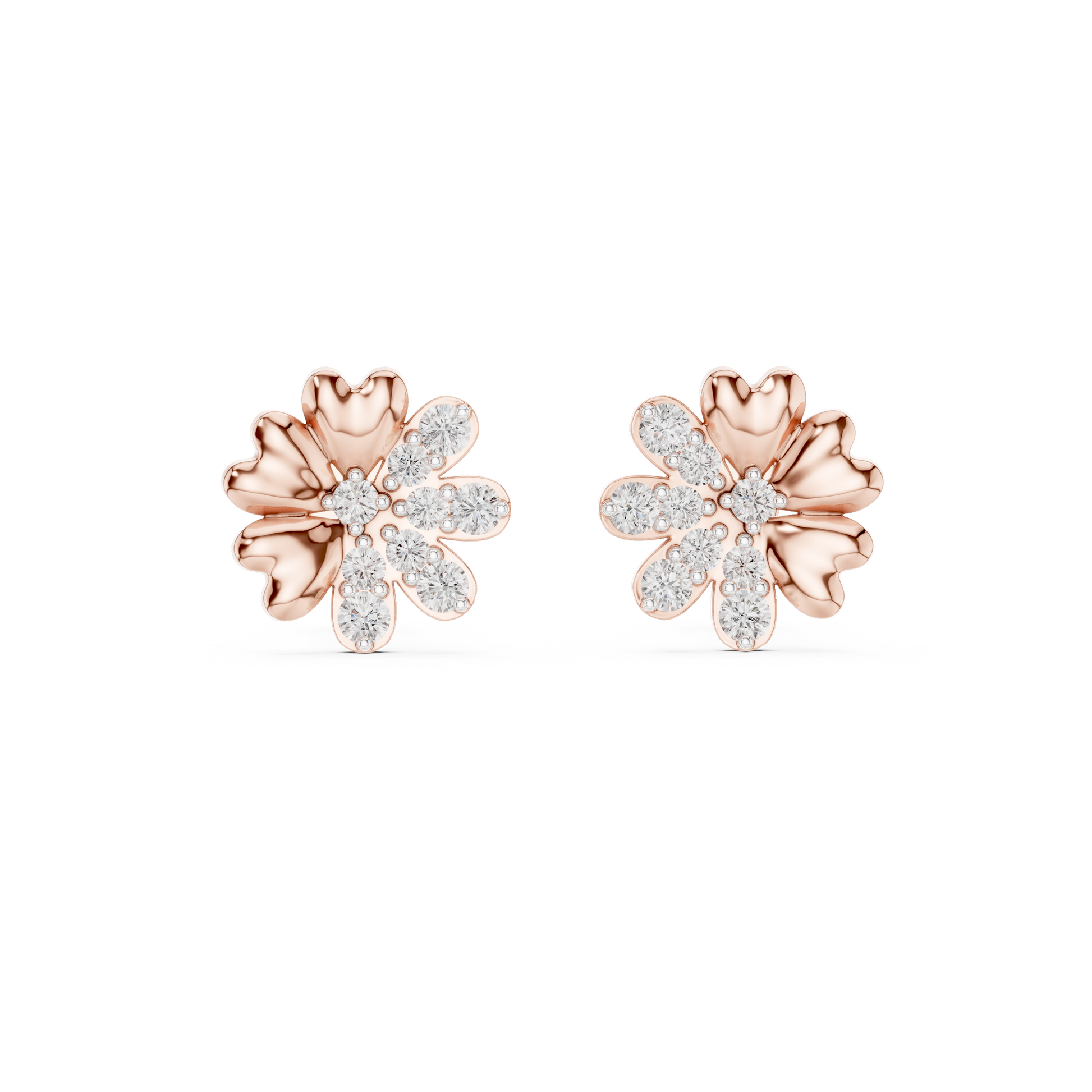 Flower-Shaped Heart Diamond Stud Earrings | Romantic Floral Sparkle