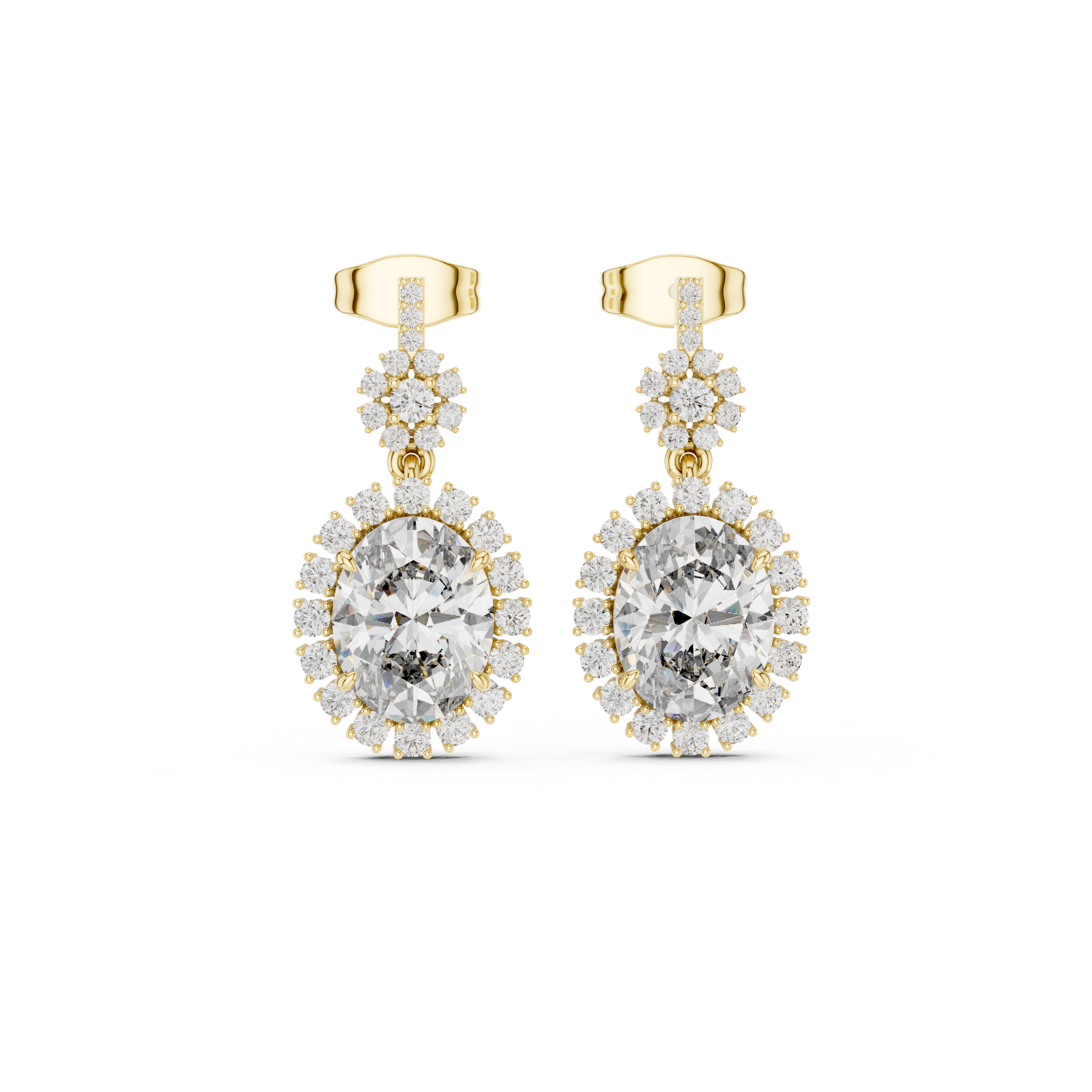 Starburst Halo Oval Diamond Drop Earrings | Lab-Grown Diamond