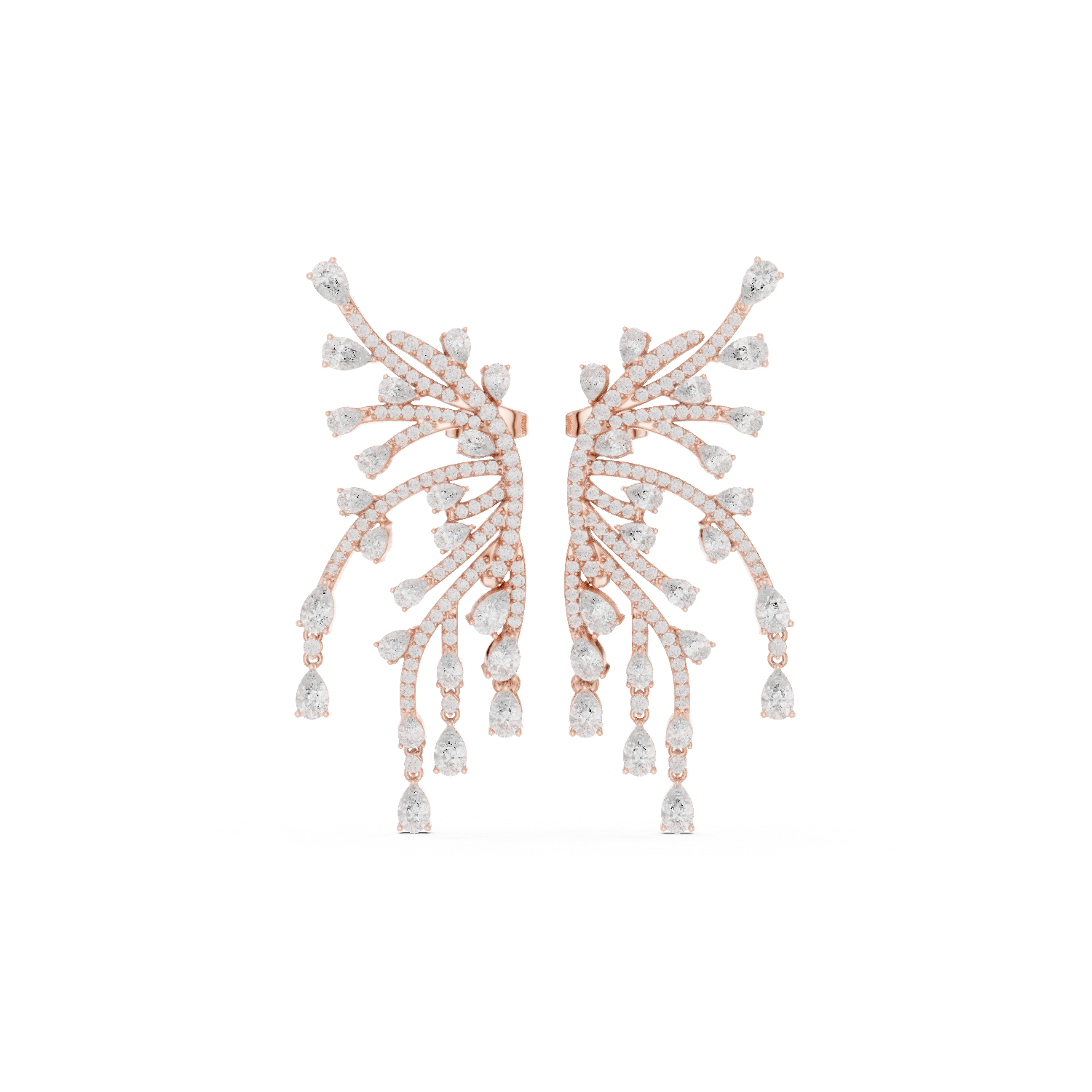 Make a bold, graceful statement with these White Diamond Wing-Shaped Ear Climber Earrings. Designed to gently climb the ear, each wing features sparkling white diamonds that catch the light from every angle. Perfect for elevating everyday looks or adding flair to special occasions, these earrings combine elegance with contemporary design.
