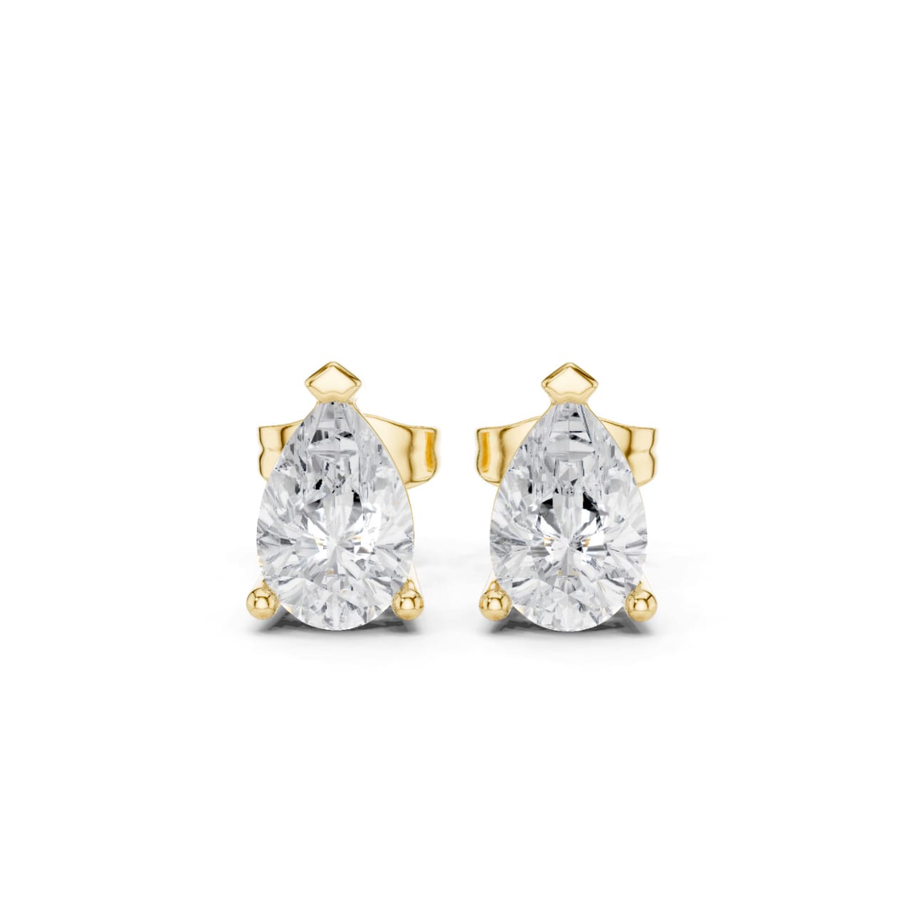 These pear-shaped diamond stud earrings showcase a refined teardrop silhouette that radiates timeless elegance. Expertly crafted in white gold or silver, each earring features a brilliant pear-cut diamond secured in a classic setting for maximum sparkle and everyday comfort.