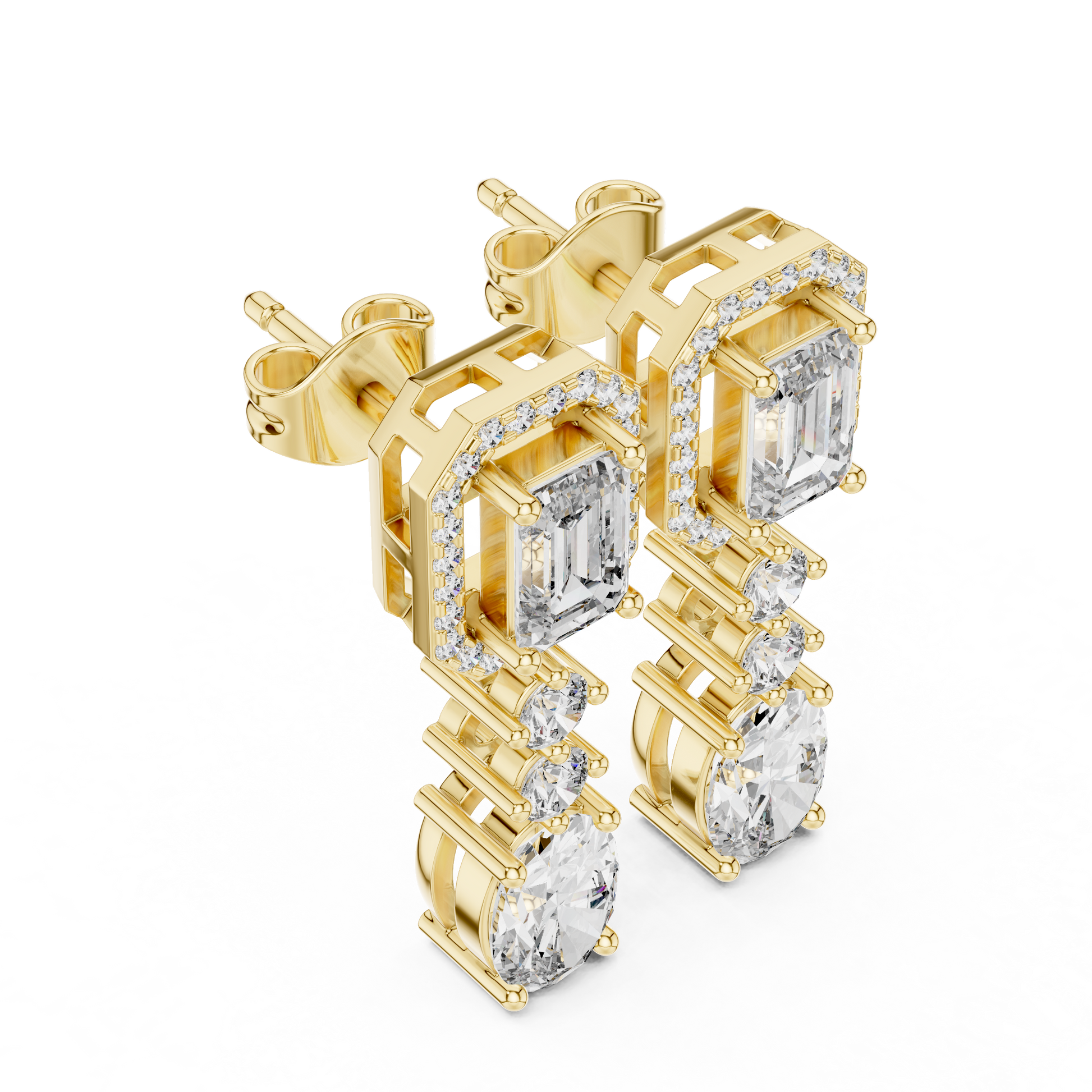 Emerald-Cut Diamond Drop Earrings | Halo & Oval Cascade