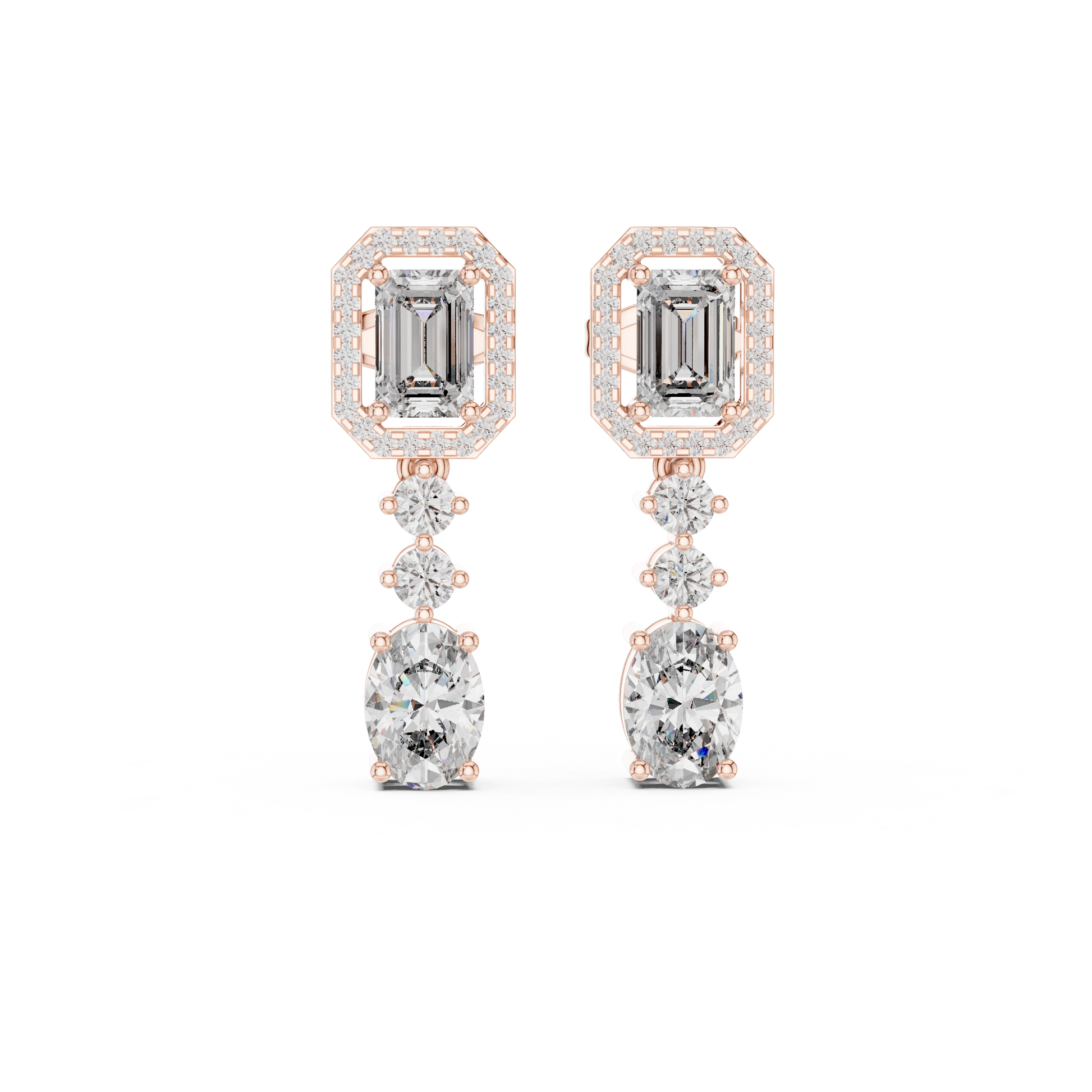 Emerald-Cut Drop Halo Dangler Earrings | Timeless Elegance