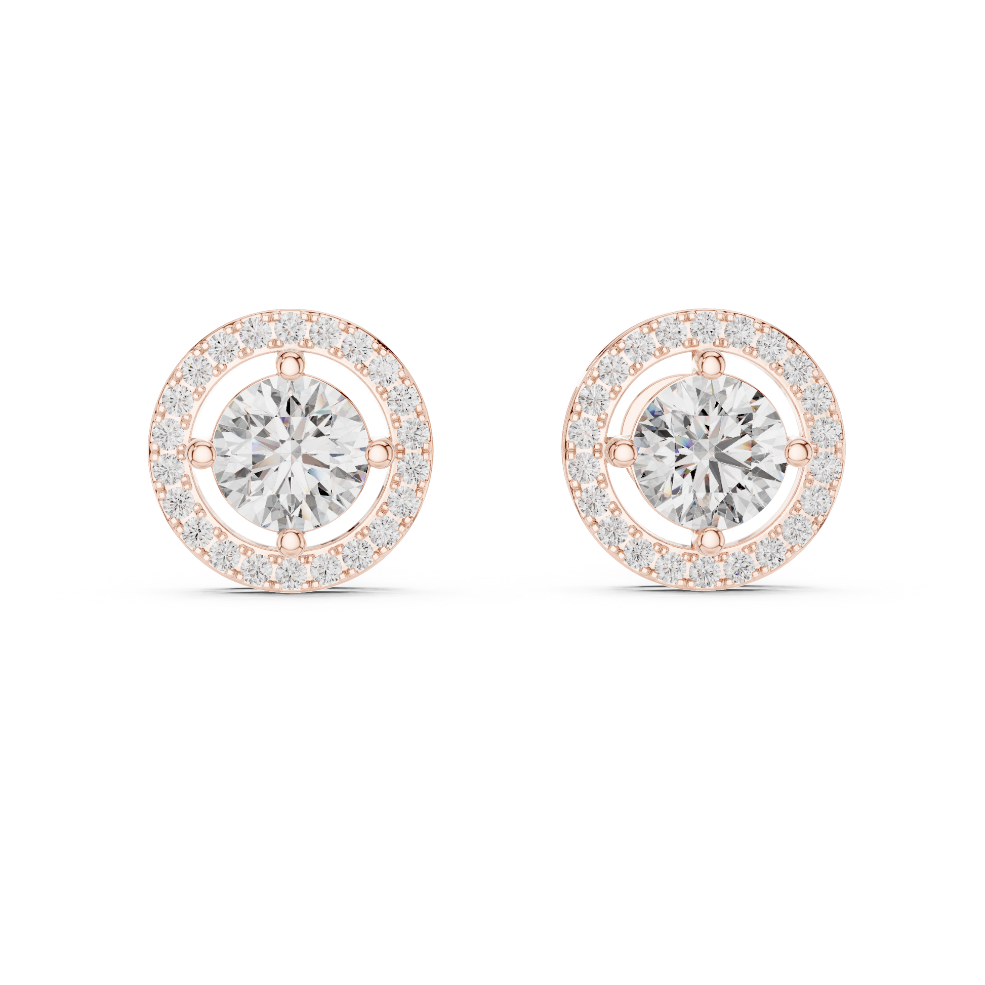 Halo Round Diamond Stud Earrings | Timeless Sparkle Elegance