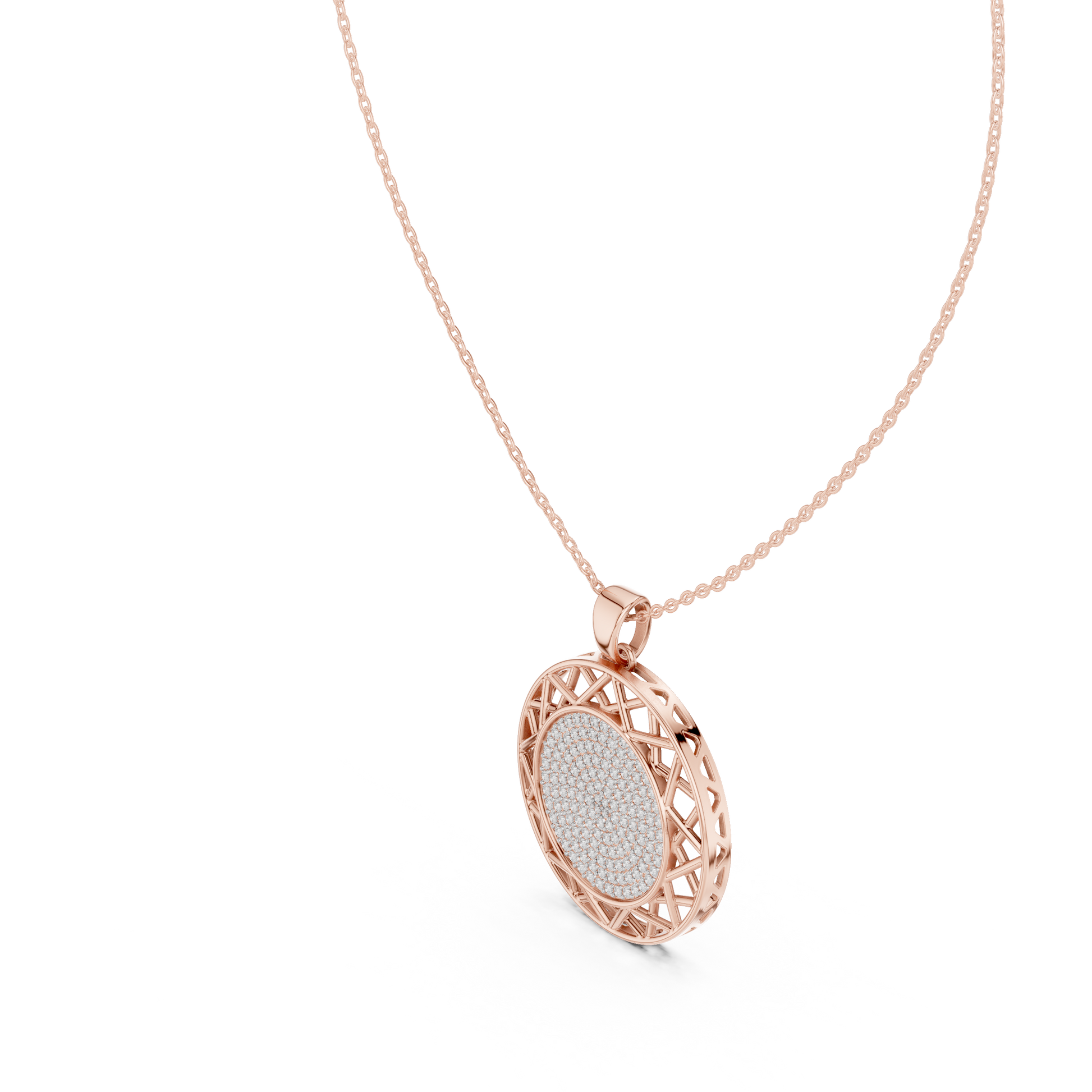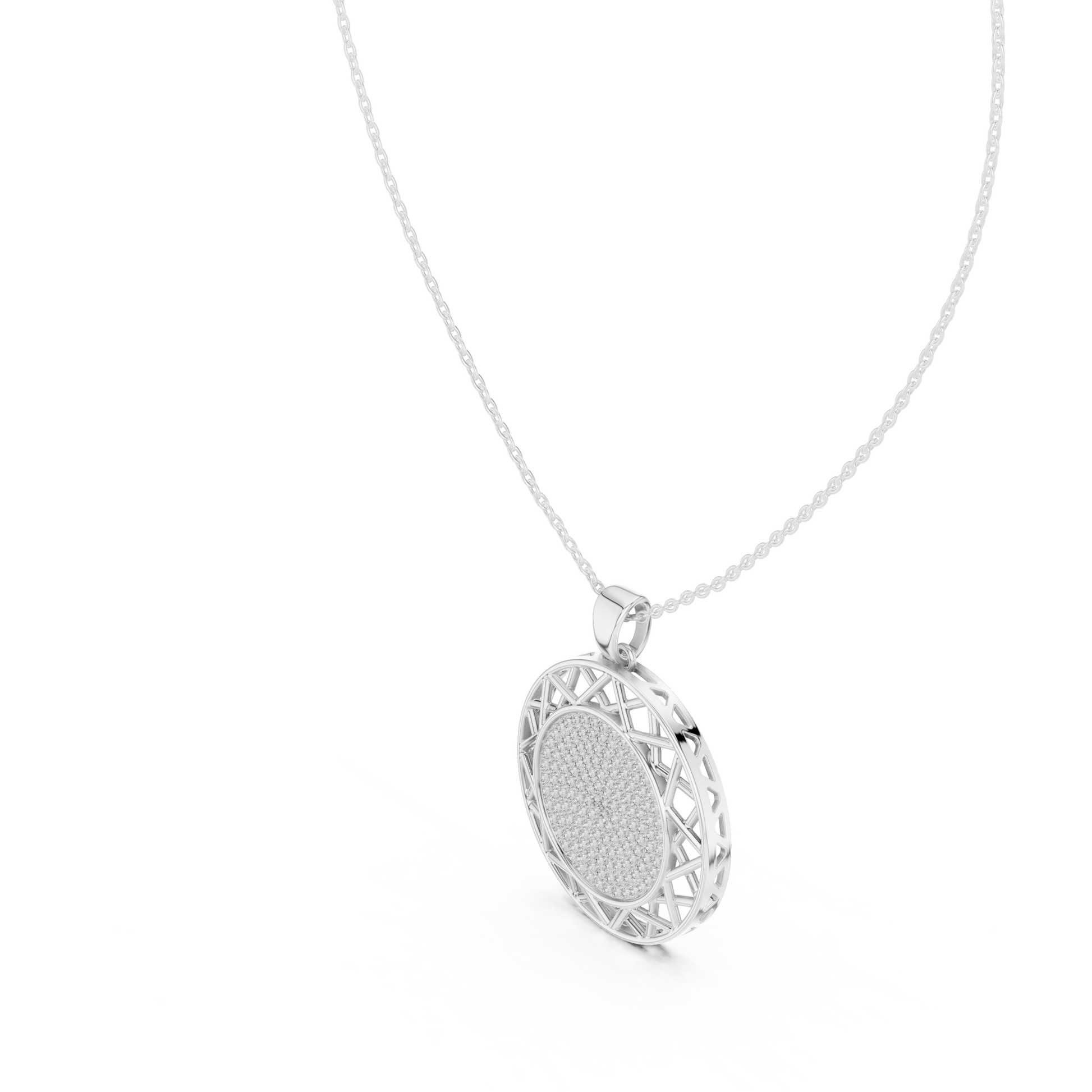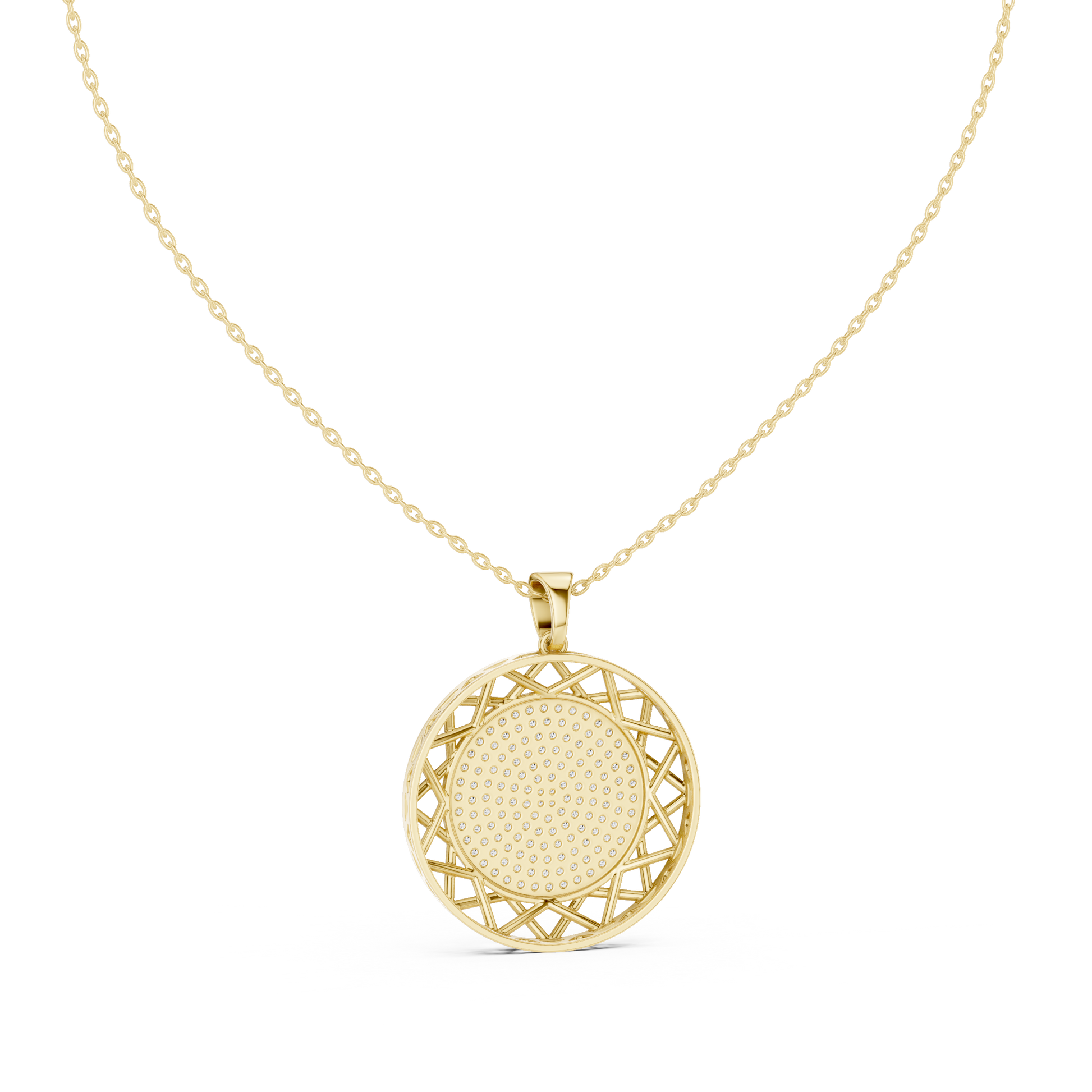 Round Geometric Lattice Medallion Pendant Necklace