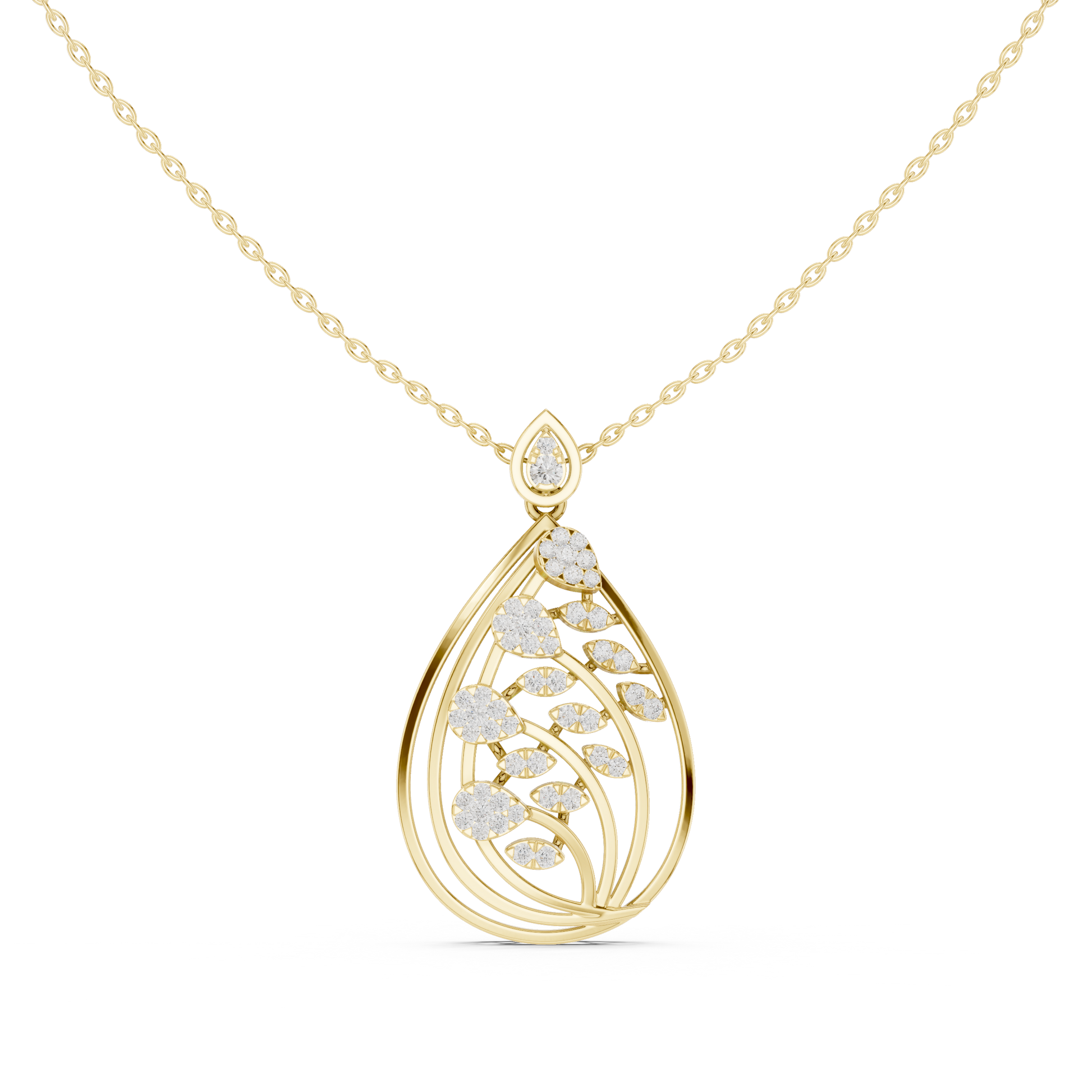 This graceful diamond leaf-design pendant necklace is inspired by nature’s beauty and renewal. Featuring a delicate leaf silhouette adorned with sparkling lab-grown diamonds, the design offers a perfect balance of organic elegance and modern sophistication.