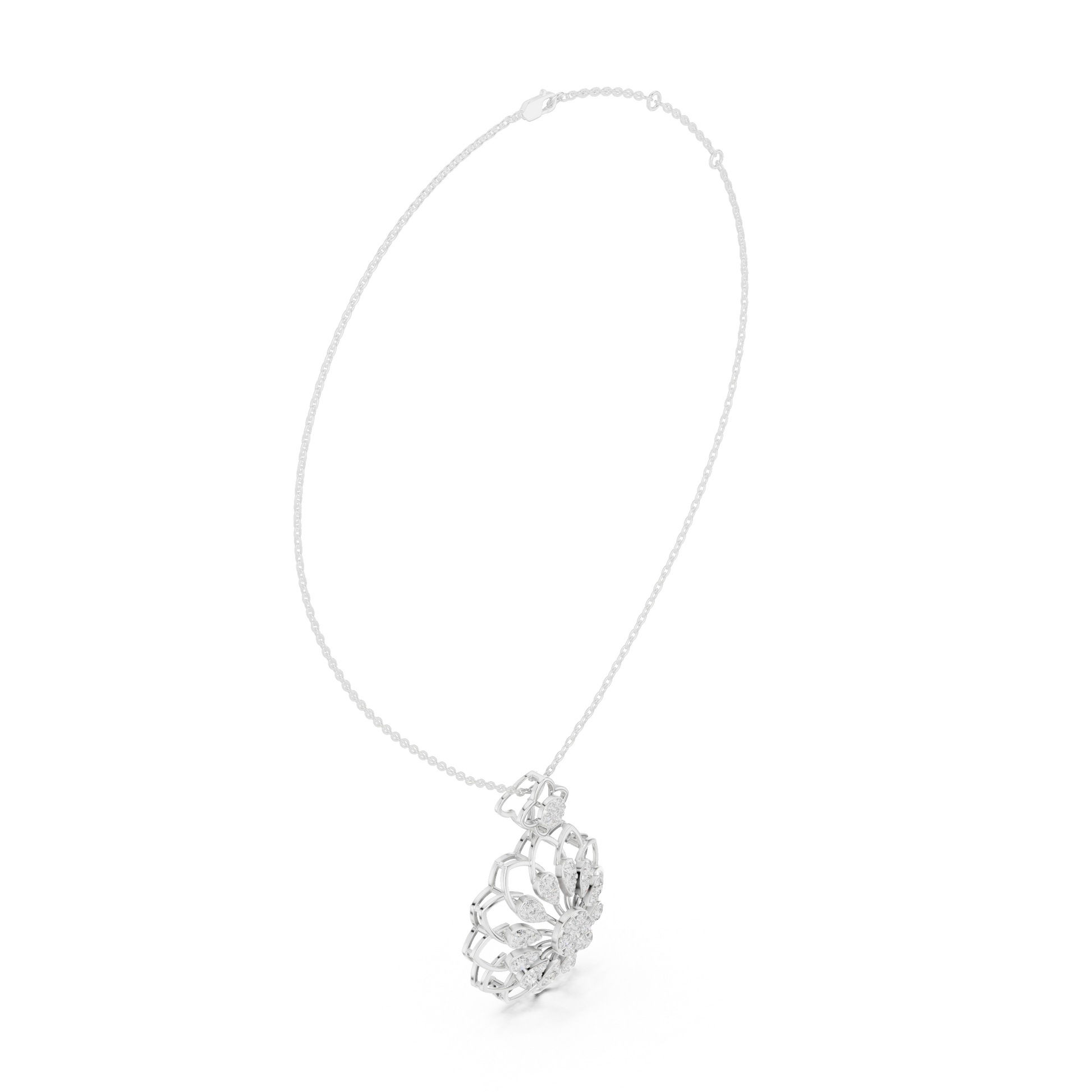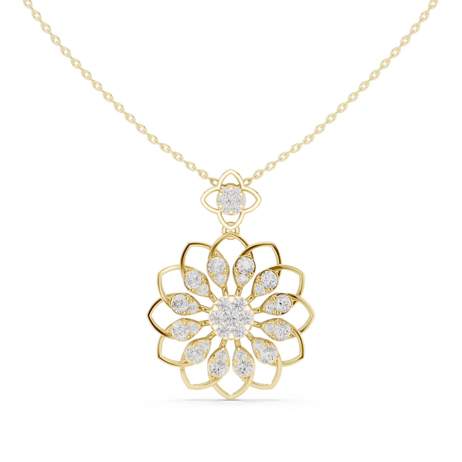 This exquisite diamond floral pendant necklace features a delicate flower-inspired design adorned with sparkling lab-grown diamonds. Each petal is carefully set to catch the light, creating a radiant and timeless look.