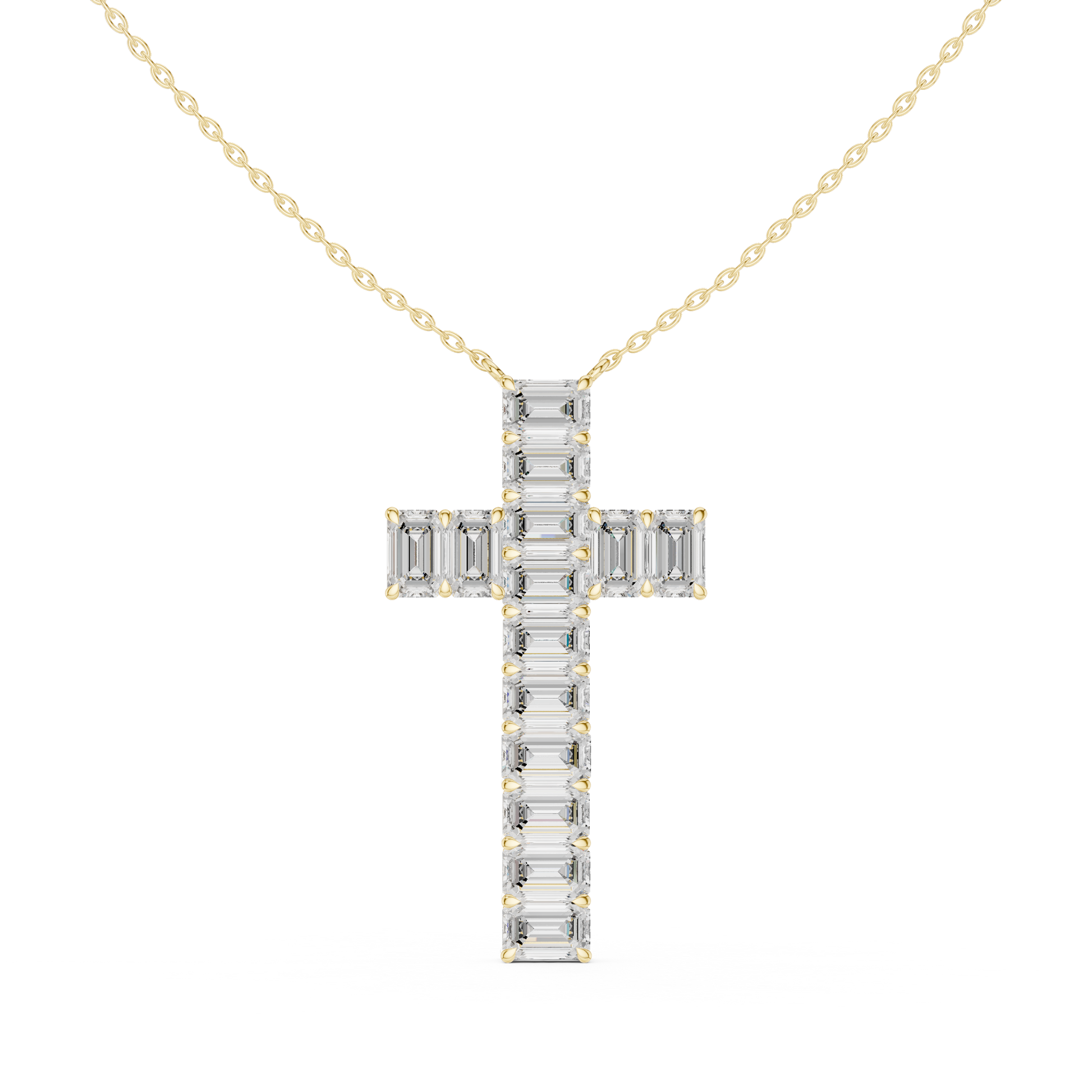 Diamond Cross Pendant Necklace | Baguette / Emerald-Cut Lab-Grown Diamonds