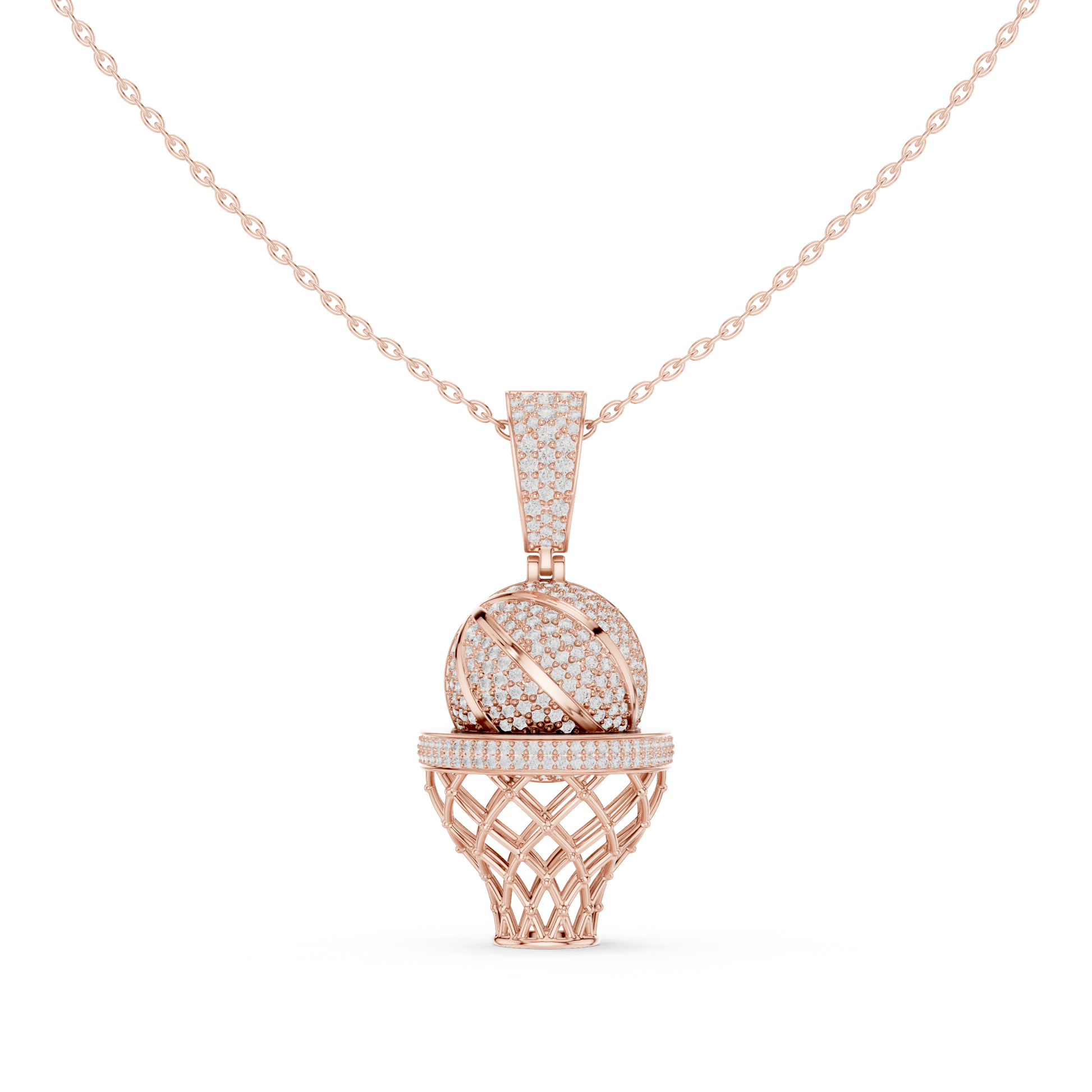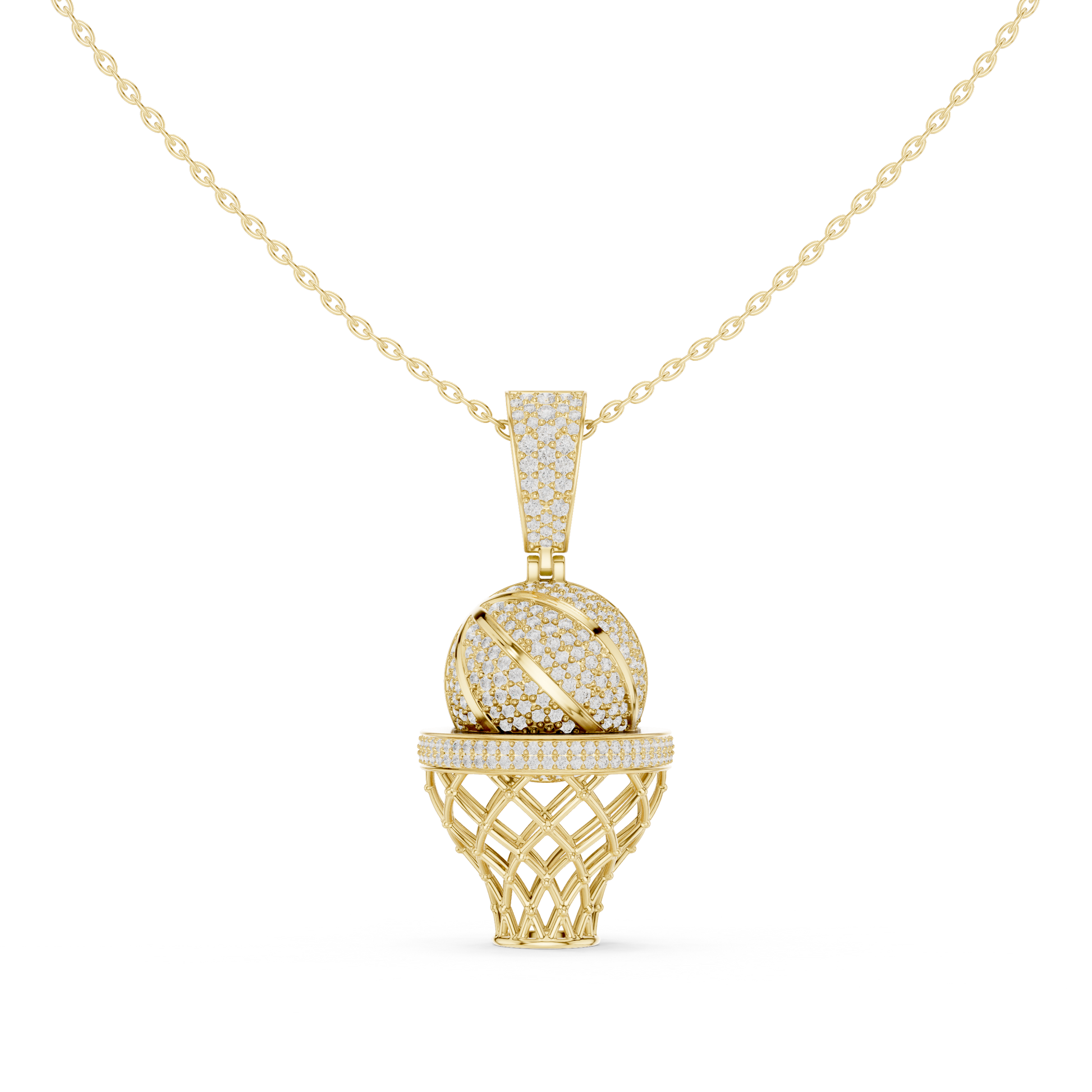 This unique basketball hoop pendant necklace features sparkling lab-grown diamonds set in a detailed hoop-inspired design A perfect blend of sports passion and fine jewelry, this pendant makes a bold yet elegant statement for everyday wear or special occasions