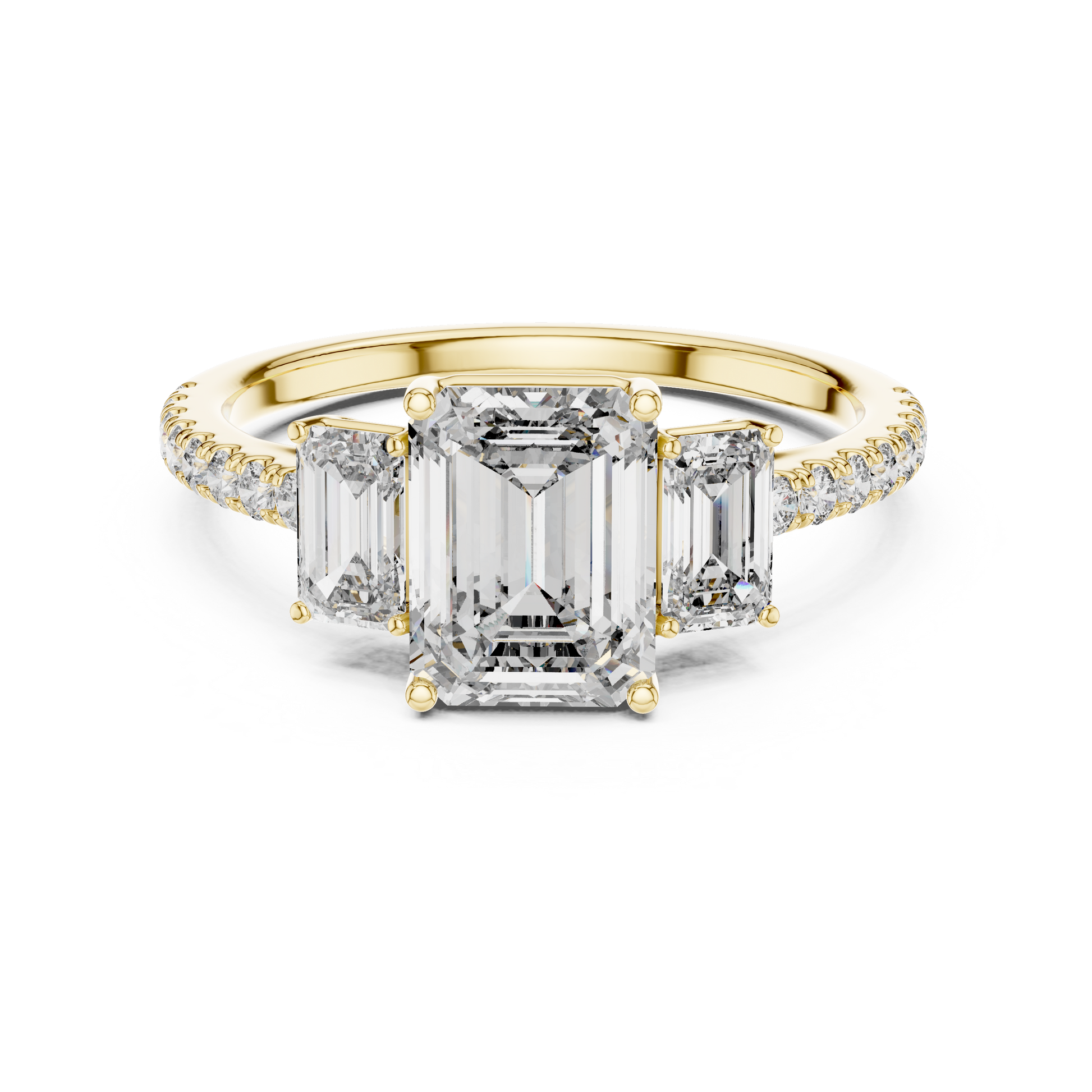• Cut: Emerald Cut (center) / Brilliant Cut (sides)