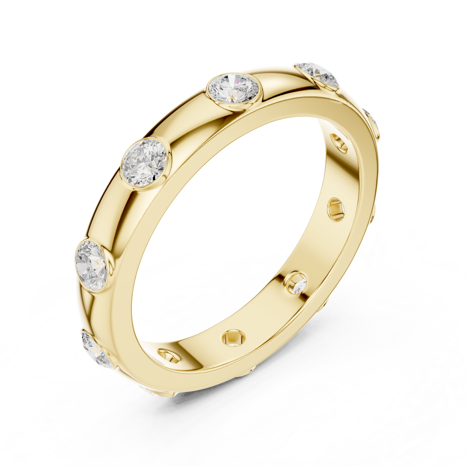 This elegant wide band ring features a continuous inlay of sparkling lab-grown diamonds, creating a sleek and modern look The bold design offers timeless sophistication, perfect for weddings, anniversaries, or everyday luxury