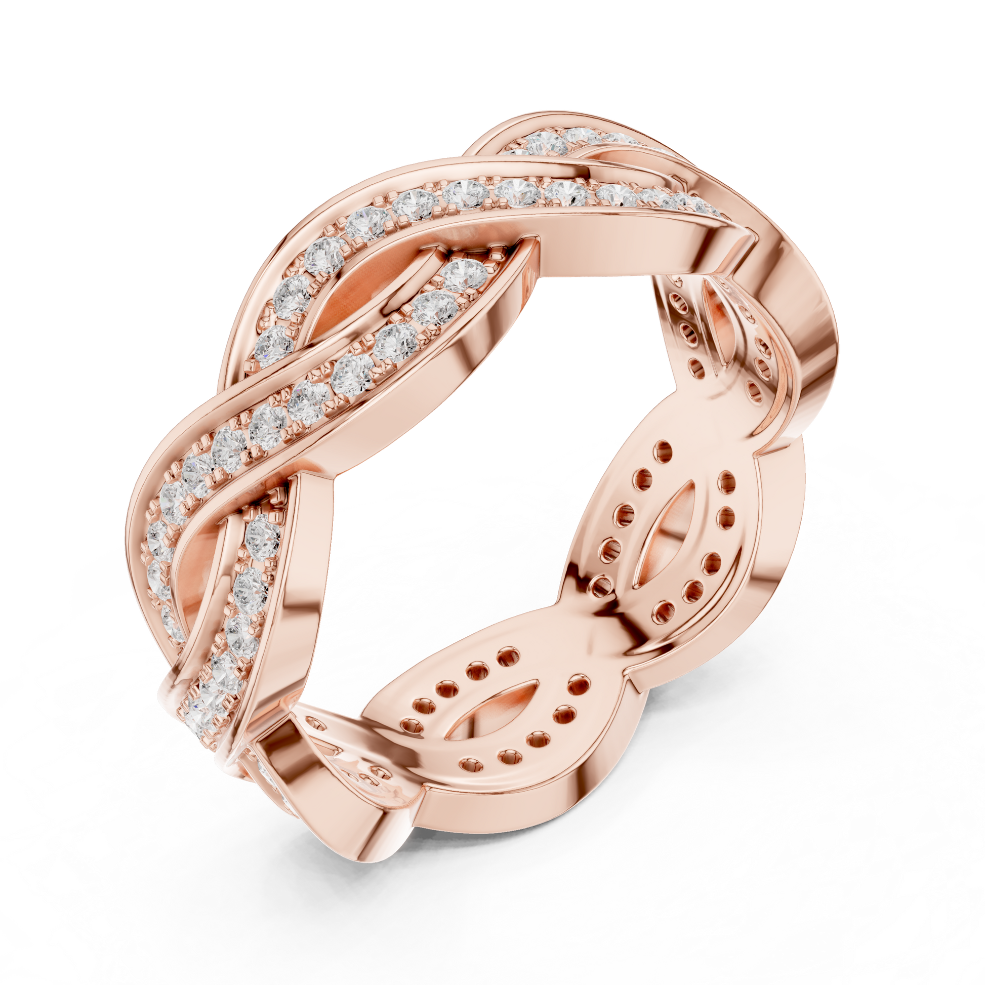 This elegant wedding band features a fancy wave intersecting infinity design adorned with simulated round brilliant-cut diamonds The flowing curves create a modern and romantic silhouette, making it a perfect matching band for weddings, anniversaries, or stacking with an engagement ring