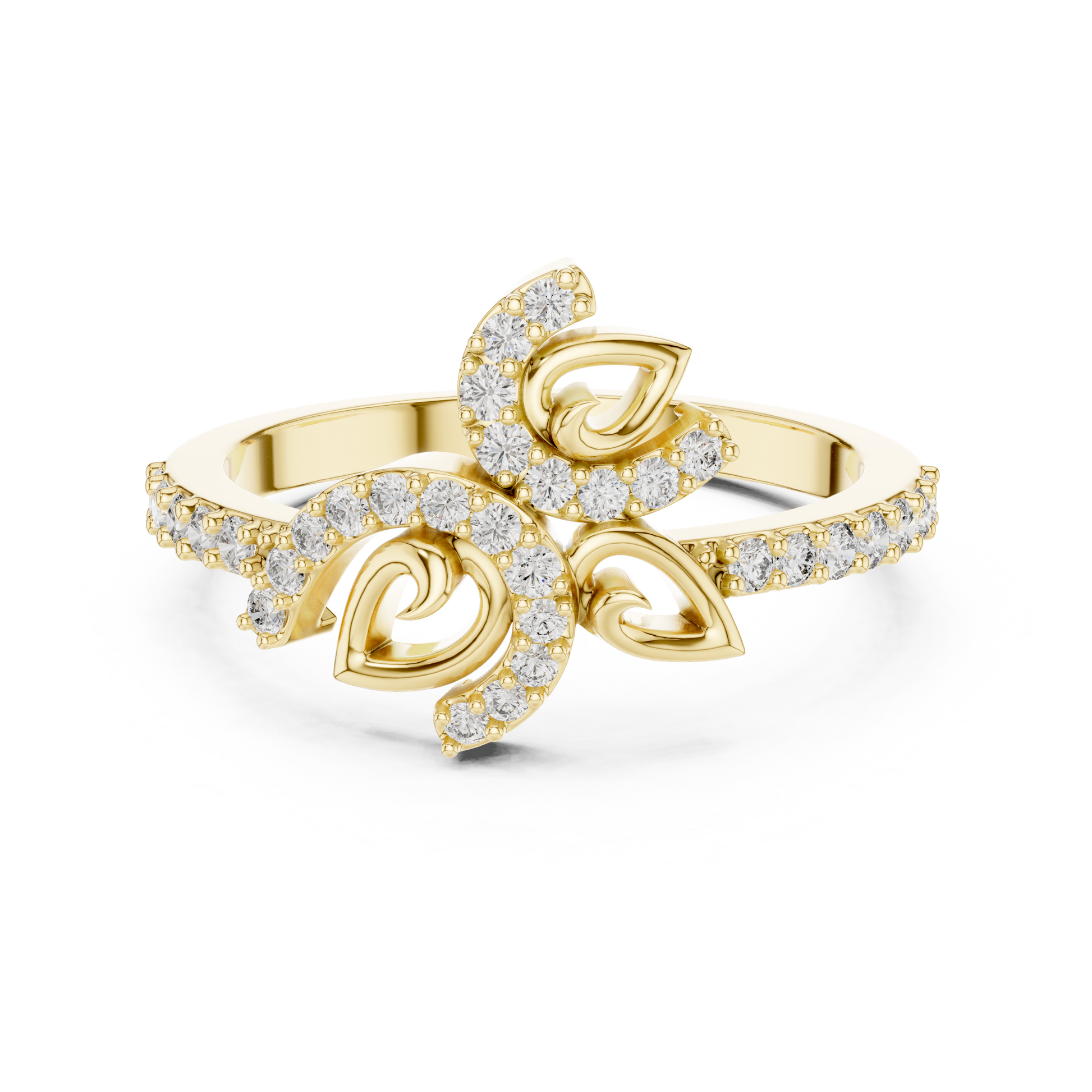 Inspired by the graceful flow of nature, the Matisha Diamond Floral Swirl Ring features a beautifully sculpted curved leaf and floral cluster design, delicately set with shimmering diamonds. The elegant swirl silhouette wraps effortlessly around the finger, creating a soft, organic sparkle that feels both romantic and modern.