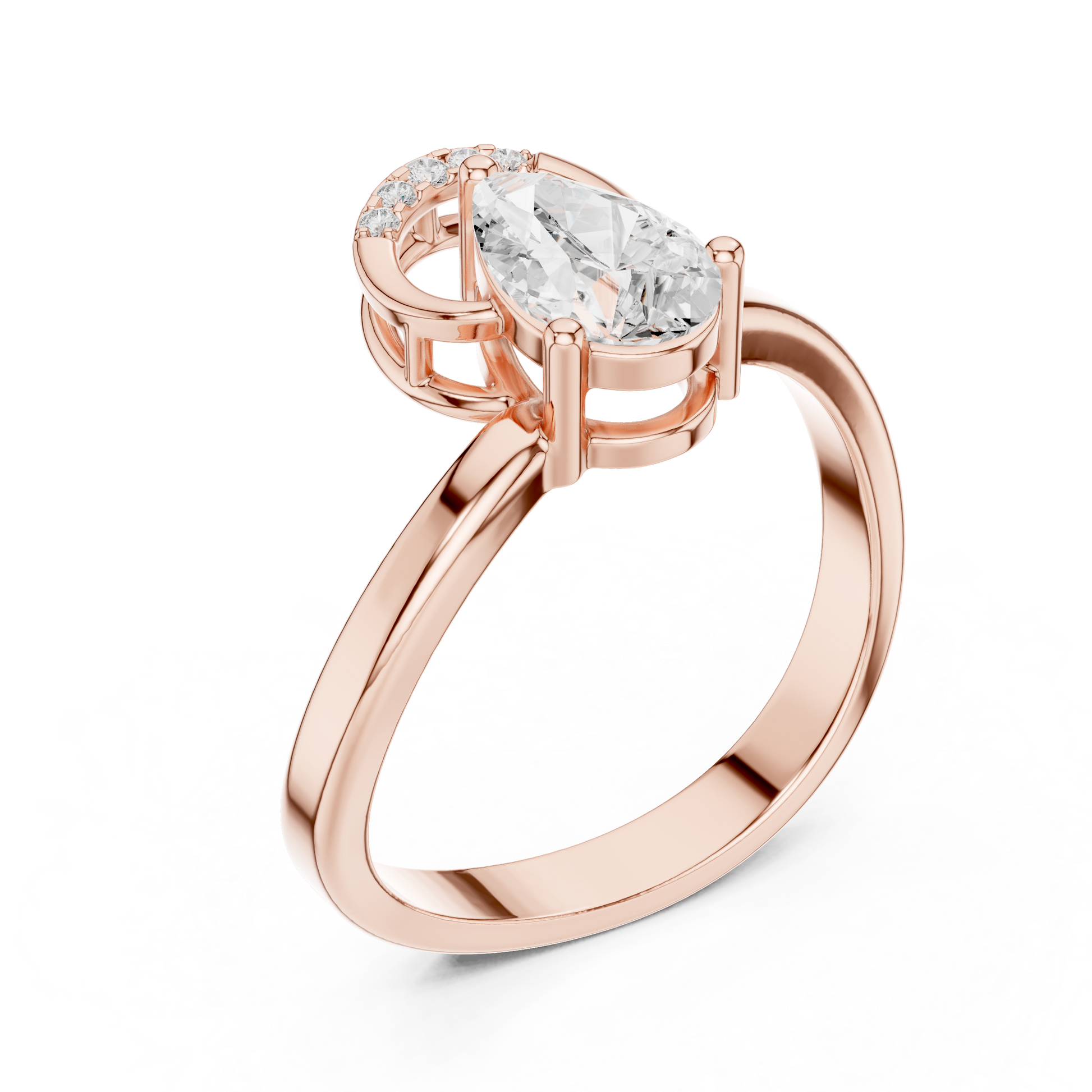 This stunning engagement ring features a pear-shaped diamond at the center surrounded by a sparkling halo The unique bypass or interlocking band design enhances the brilliance and adds a modern twist to a classic style perfect for proposals, weddings, or milestone celebrations