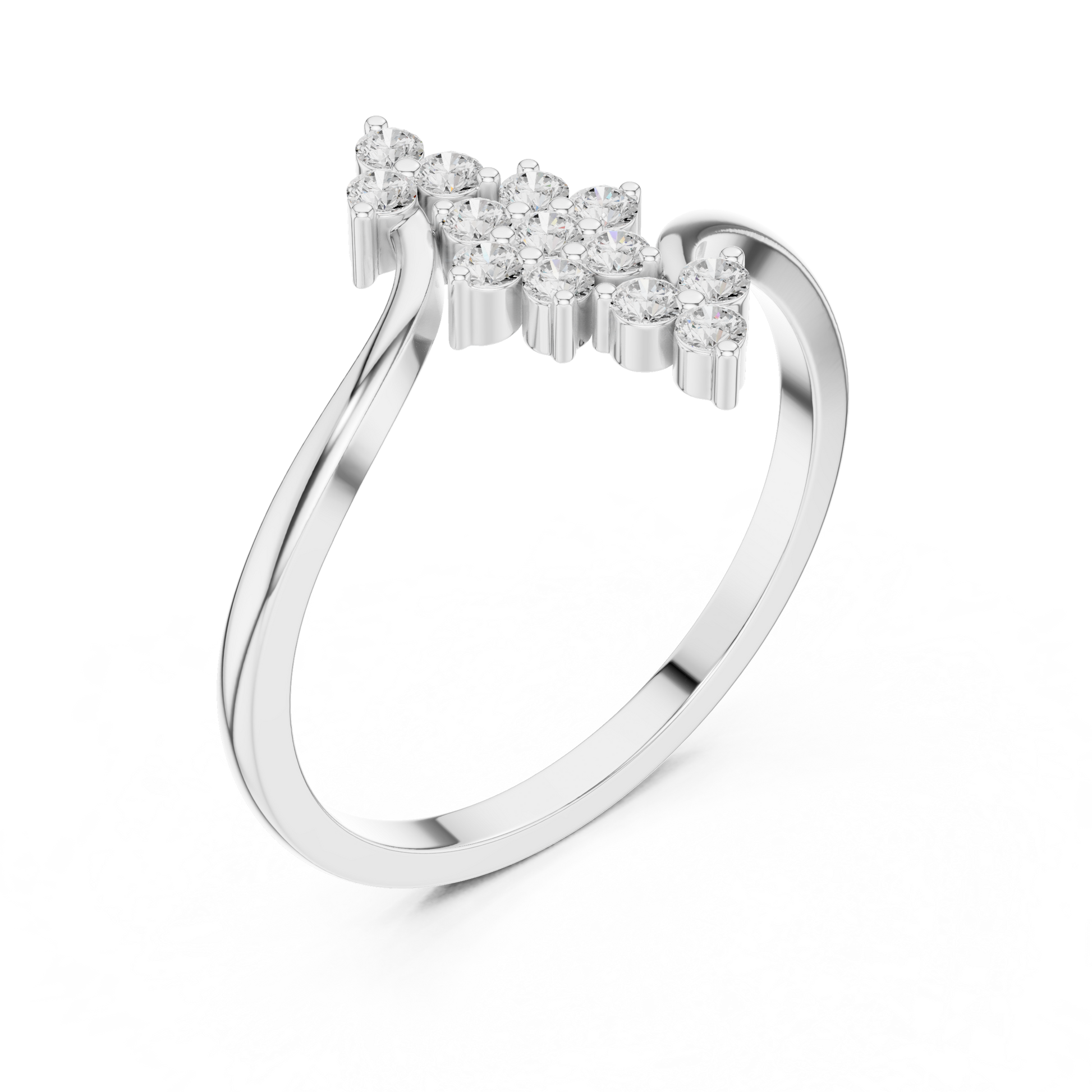 This striking Vighnaharta ring features a sterling silver bypass band adorned with a cluster of lab-grown diamonds The flowing crossover design creates a modern and elegant silhouette while the clustered diamonds add brilliance and visual interest Perfect for everyday wear or special occasions