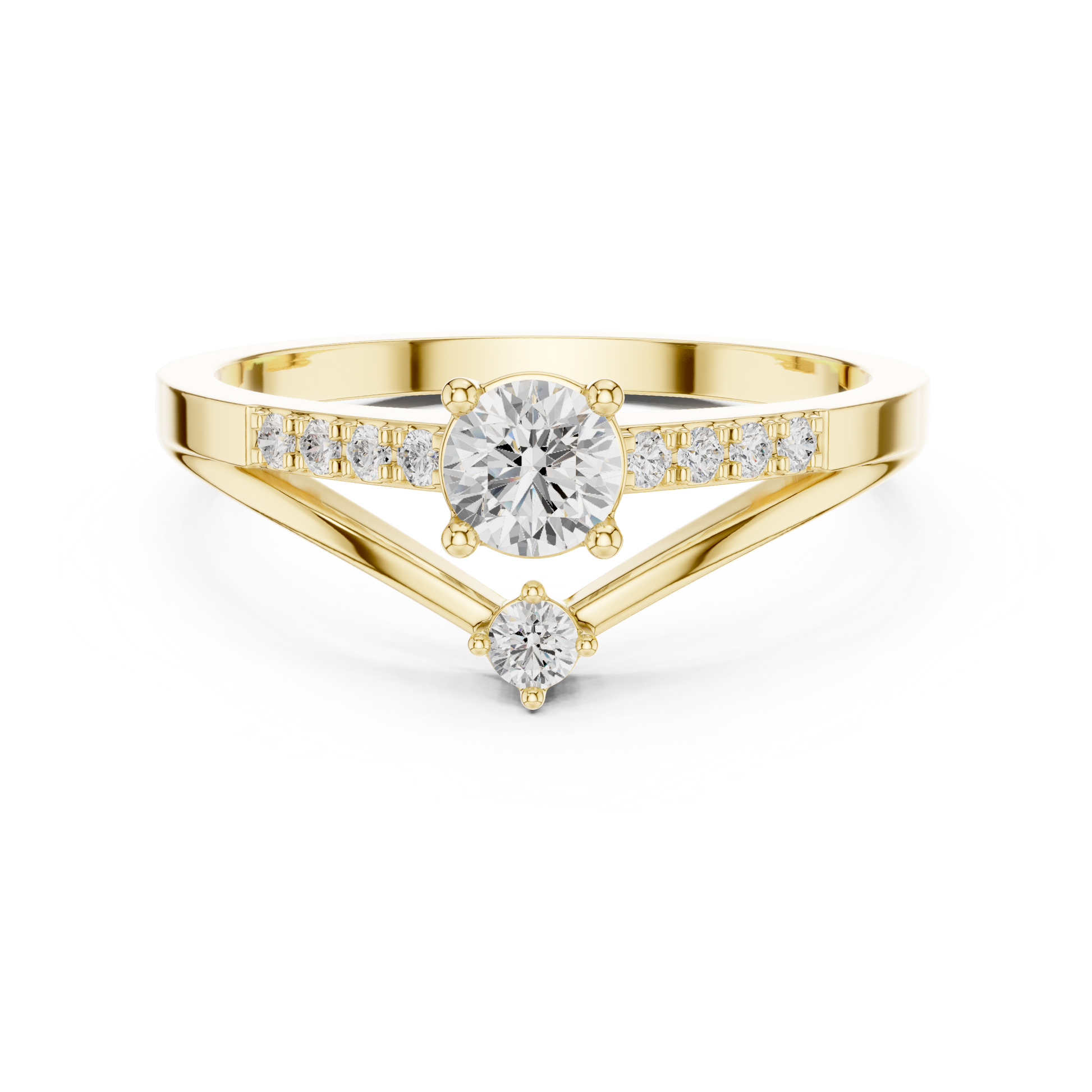 V-Shaped Solitaire Diamond Engagement Ring | Channel-Set Side Stones