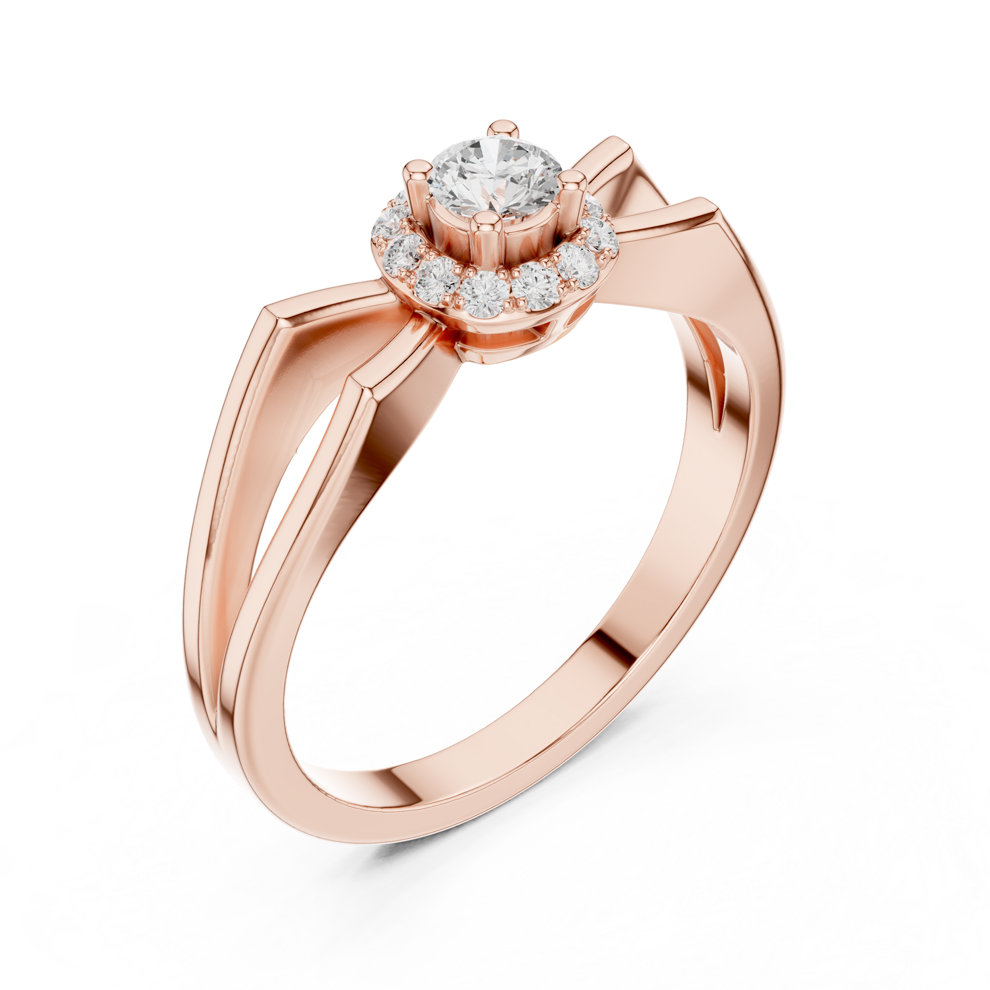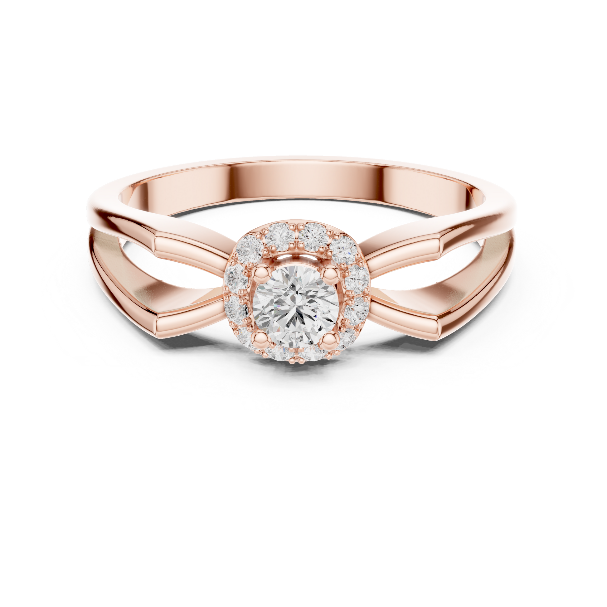This elegant engagement ring features a sparkling center diamond surrounded by a halo of smaller diamonds and set on a split-shank band The combination of the halo and split-shank design enhances brilliance and creates a modern, sophisticated look perfect for proposals, weddings, or milestone gifts