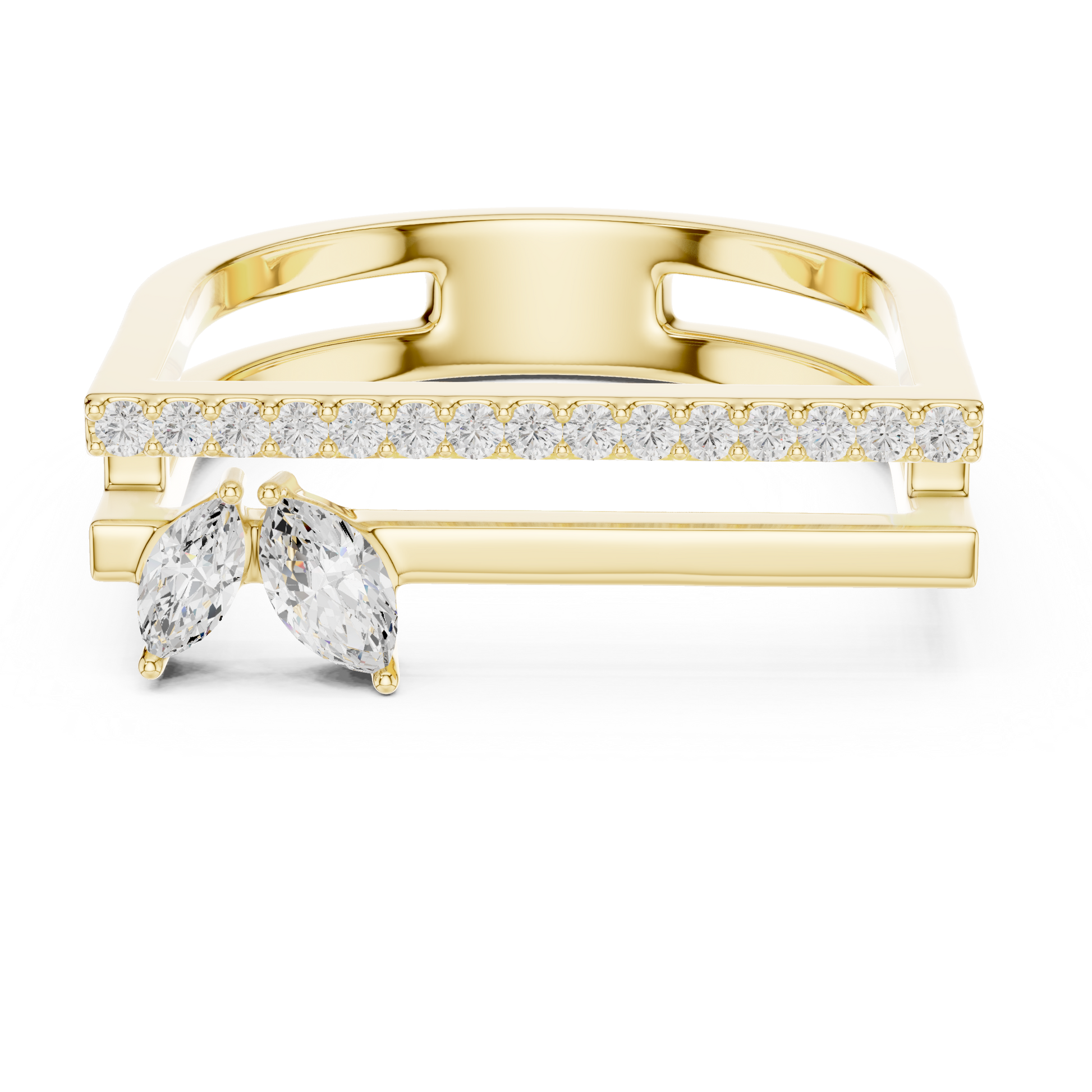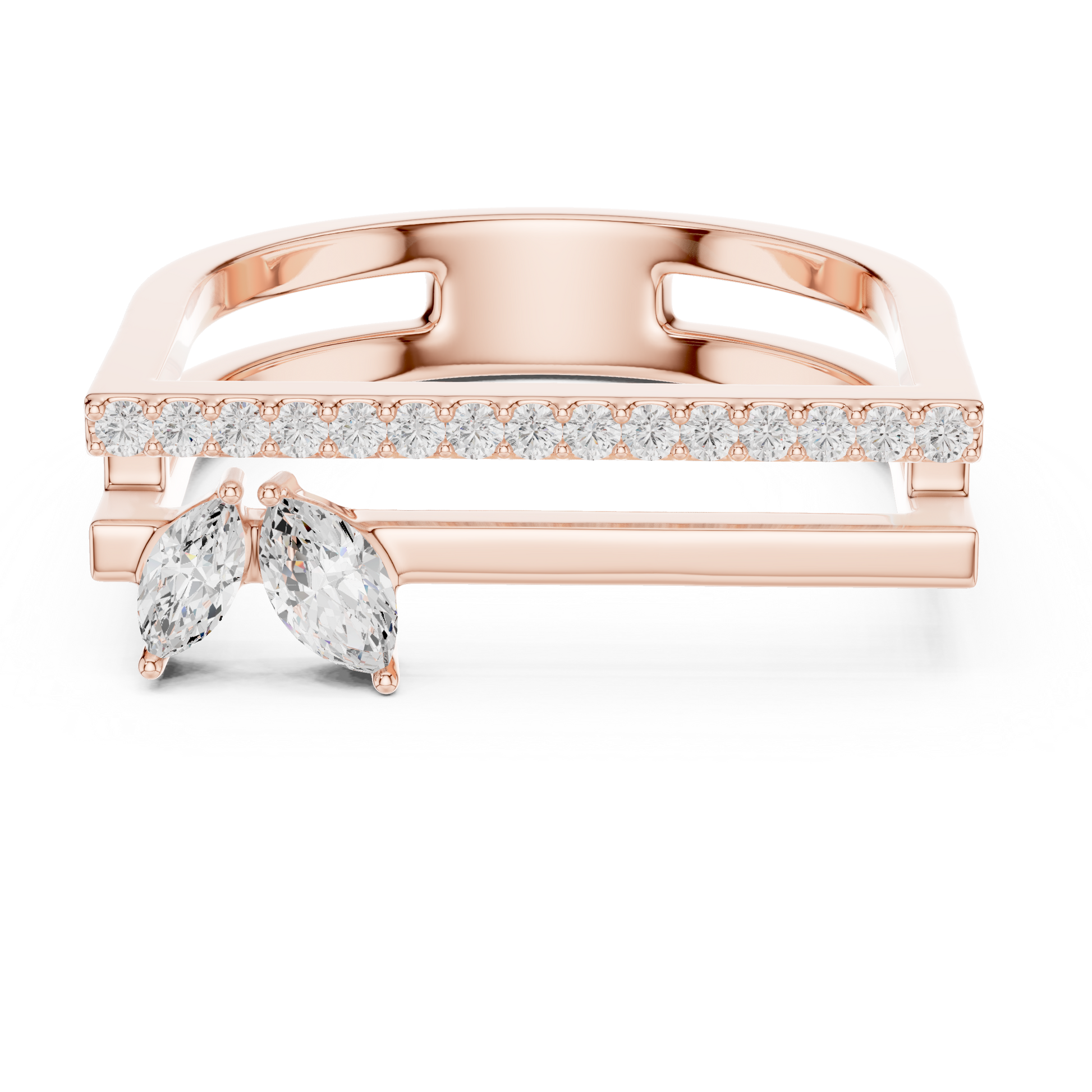 This elegant diamond ring enhancer is designed to perfectly fit around a central engagement or wedding ring Adding subtle sparkle and enhancing the overall look this ring guard creates a cohesive and sophisticated appearance perfect for special occasions or everyday elegance