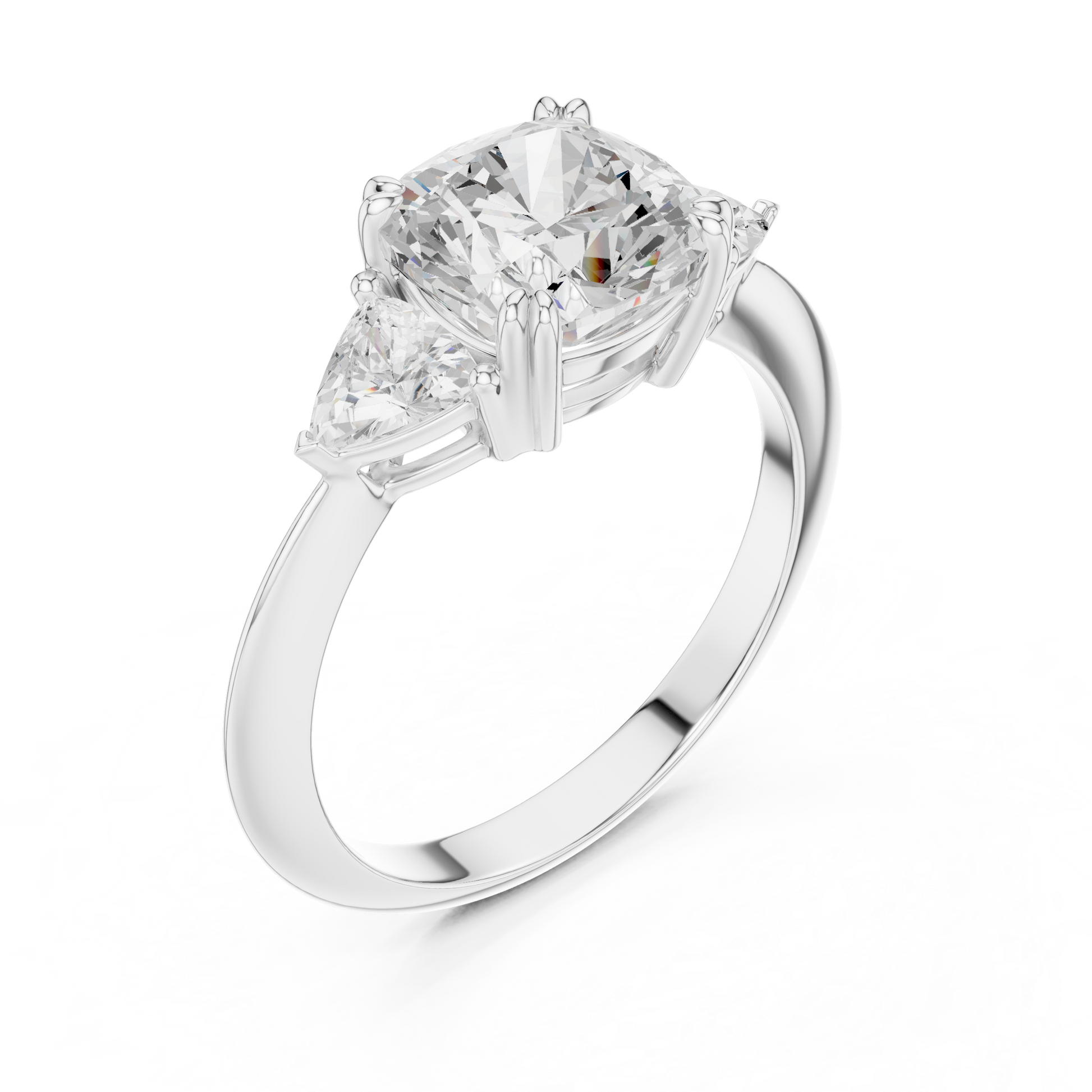 Three-Stone Engagement Ring | Cushion Center with Trillion Side Stones