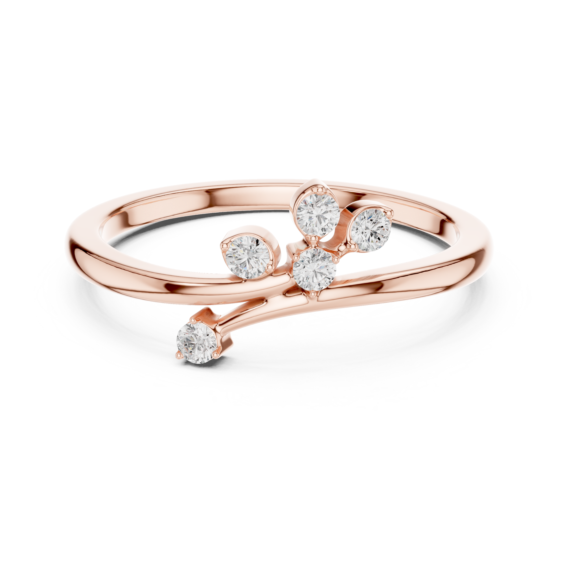 This elegant bypass diamond ring features four round brilliant diamonds gracefully set in a flowing, open bypass design. The unique silhouette symbolizes two paths coming together, making it a meaningful choice for love, milestones, or personal style. Its modern yet timeless appeal makes it perfect for everyday wear or special occasions.
