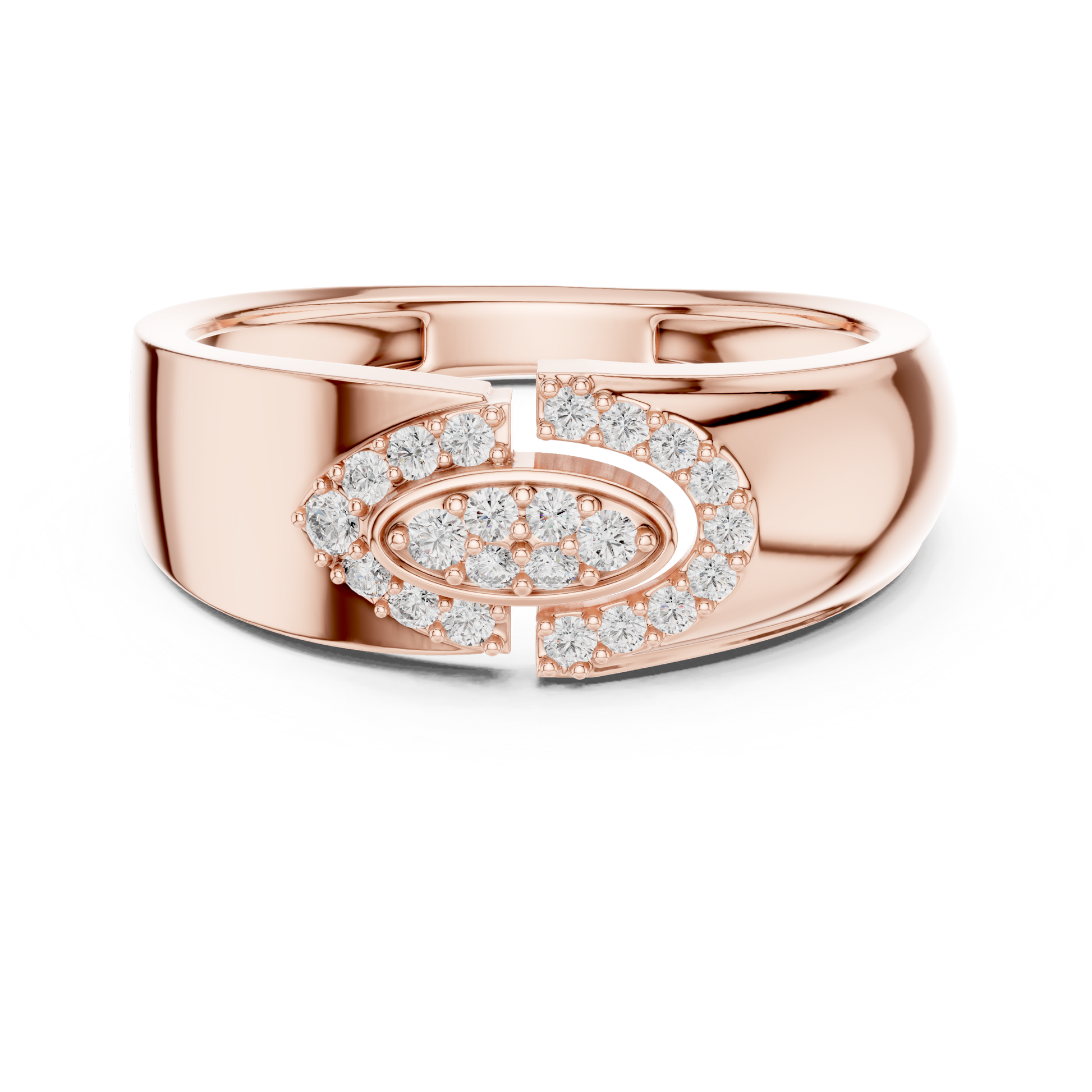 ✔ Oval-shaped central diamond with halo design